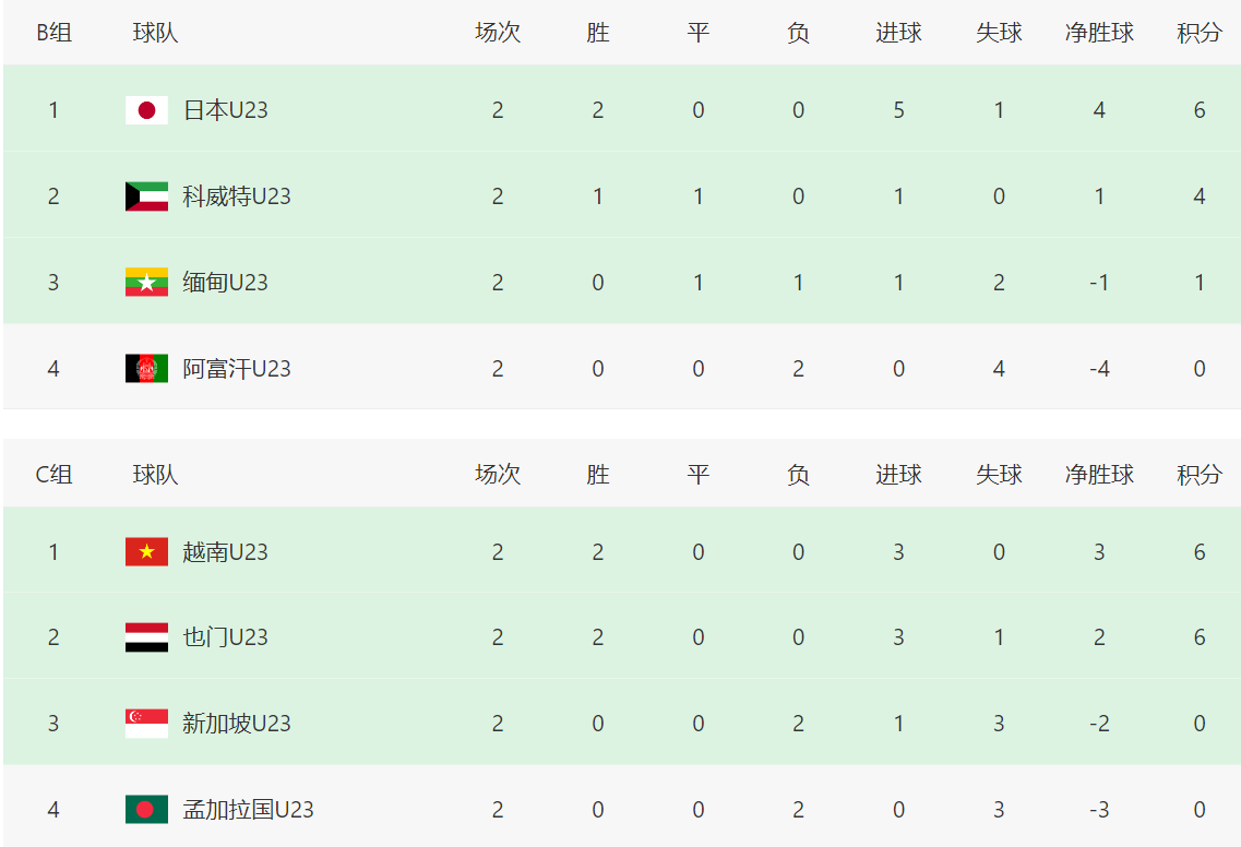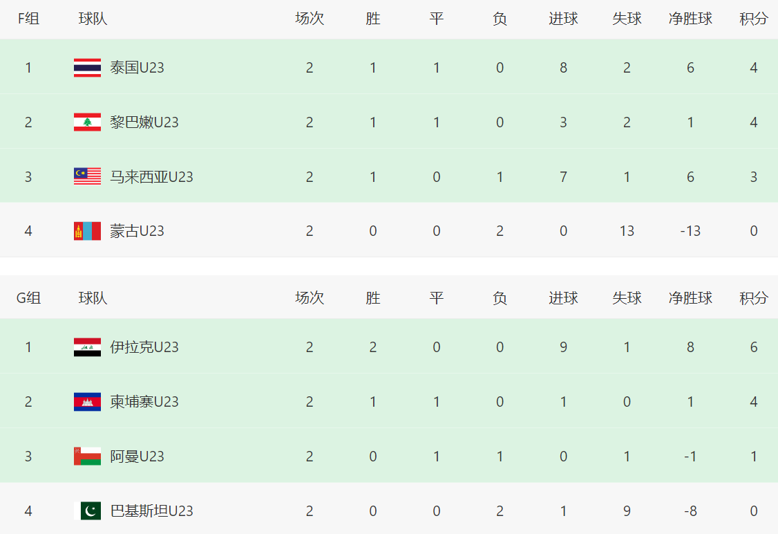 最新积分榜,澳大利亚队跟中国队同积6分,澳大利亚队领先9个净胜球暂居第一,中国队暂居第二。